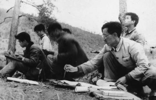 陈金章与学生在户外写生