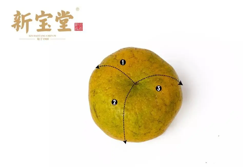 “正三刀法”是后期人们为了让晒制的新会陈皮更加美观,储存更方便,而延伸出来的另一种开皮方法。